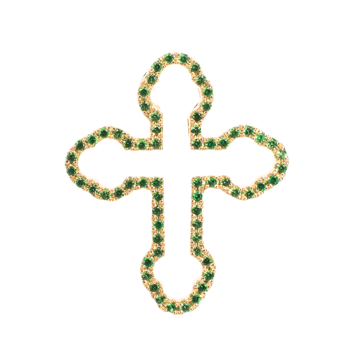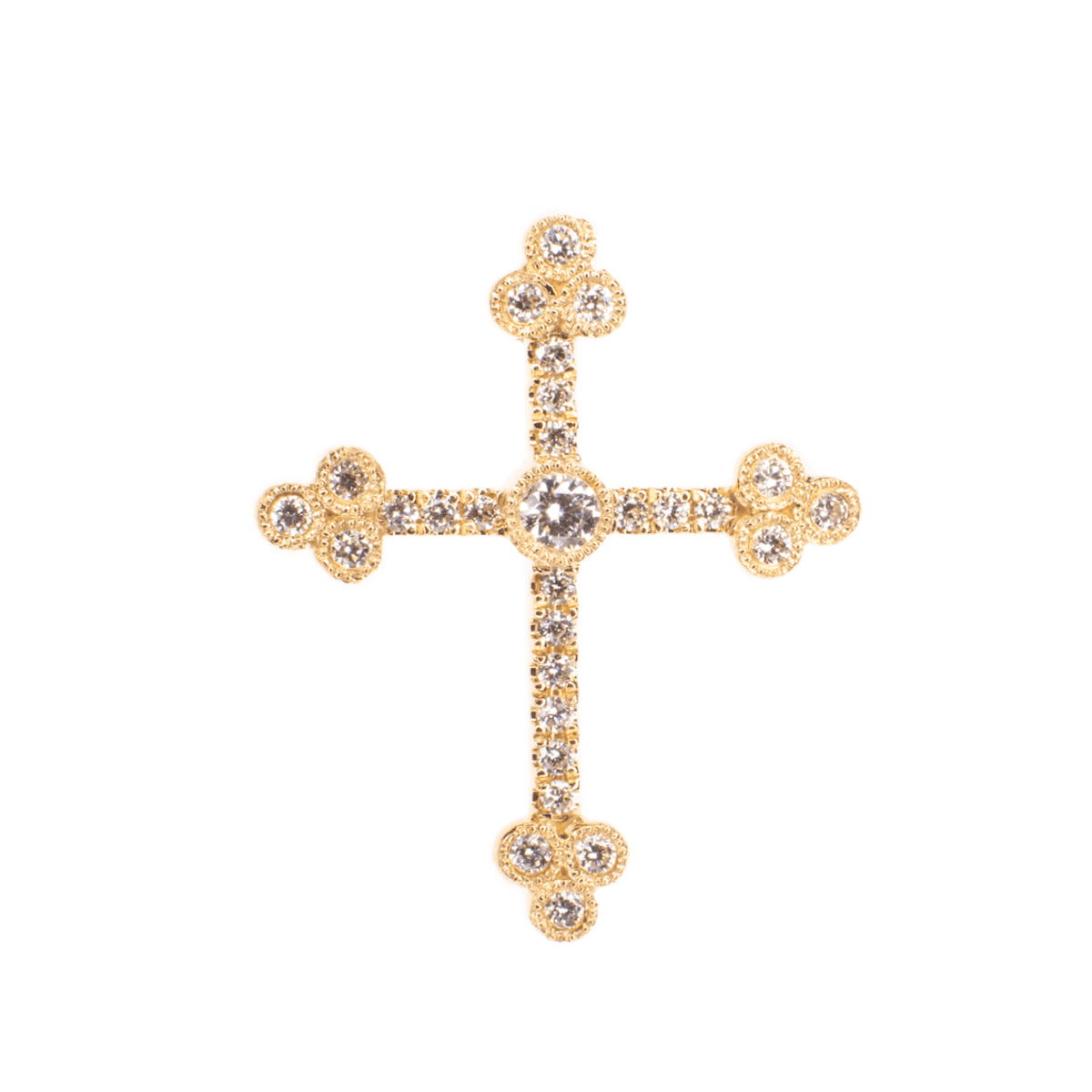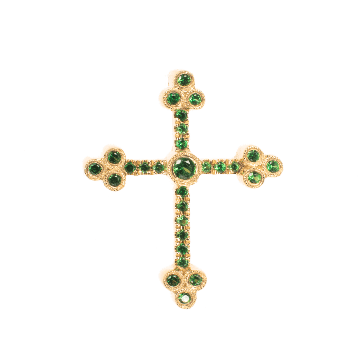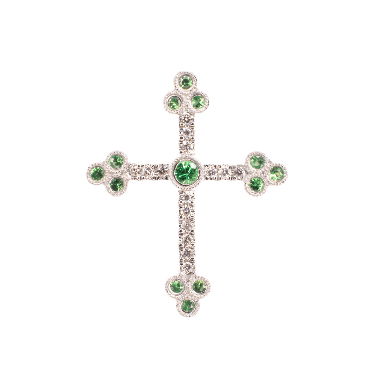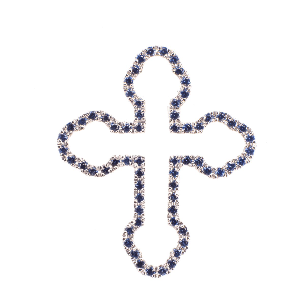 The Inner Cross is suspended within the Outer Cross, AND every single gemstone and diamond is cut with the full 57 facets, creating a sparkle so miraculous you just have to see it to believe it.