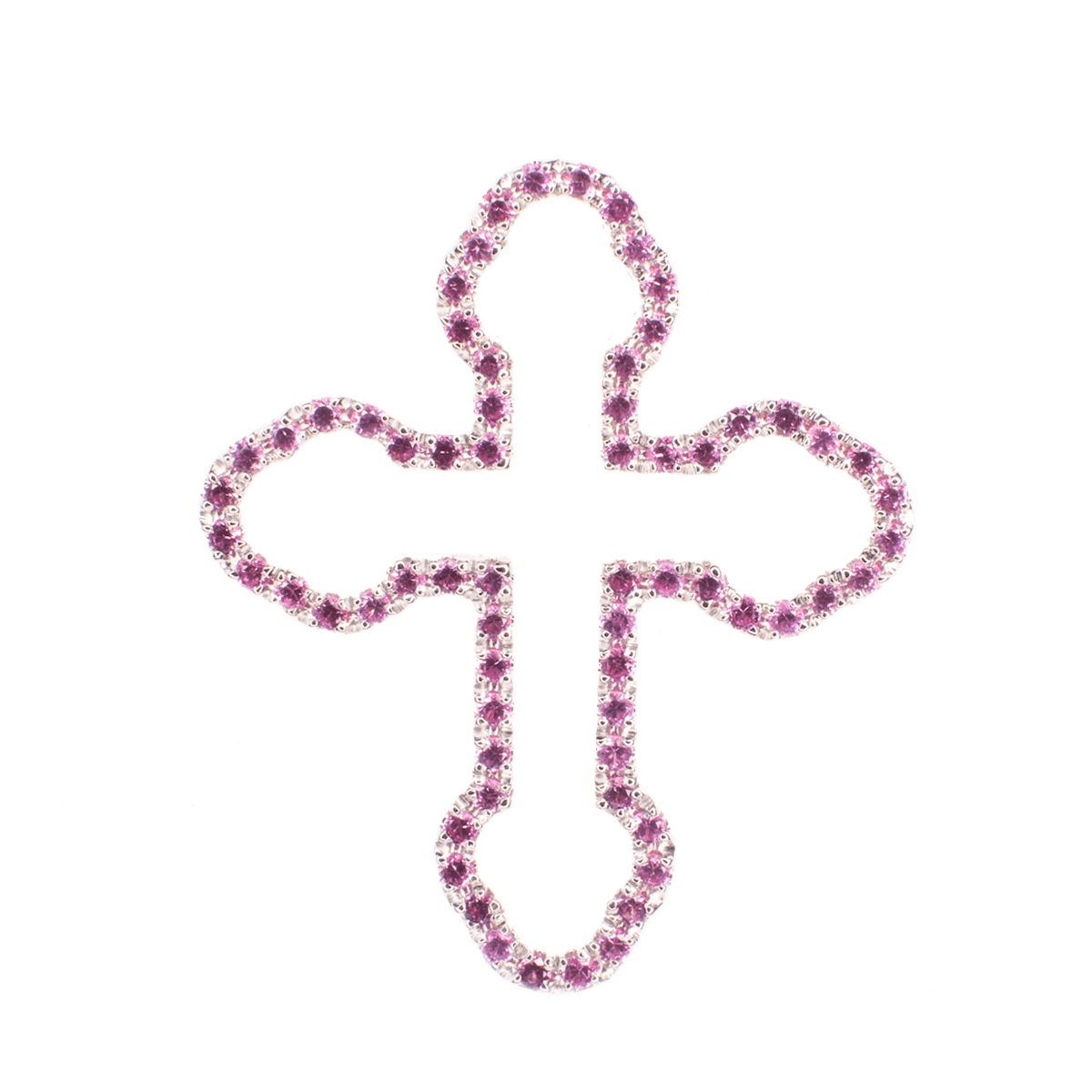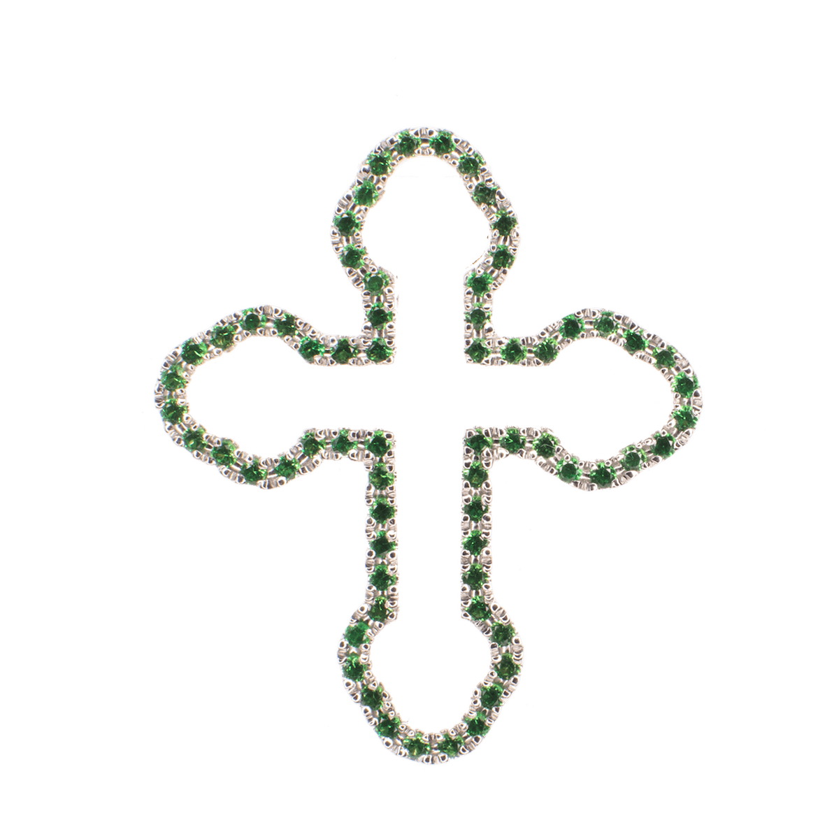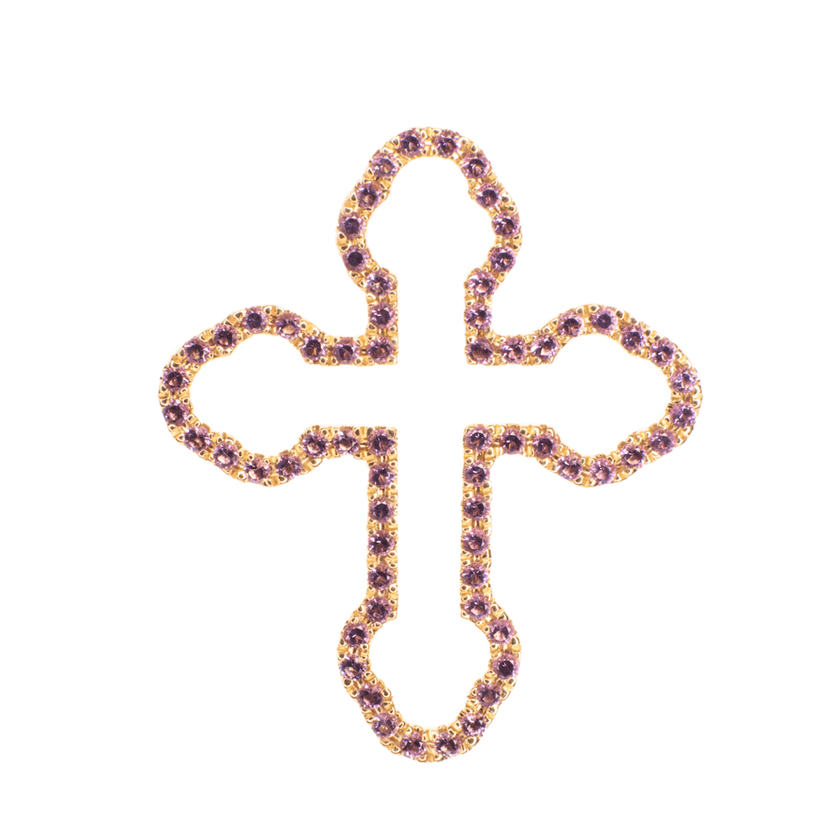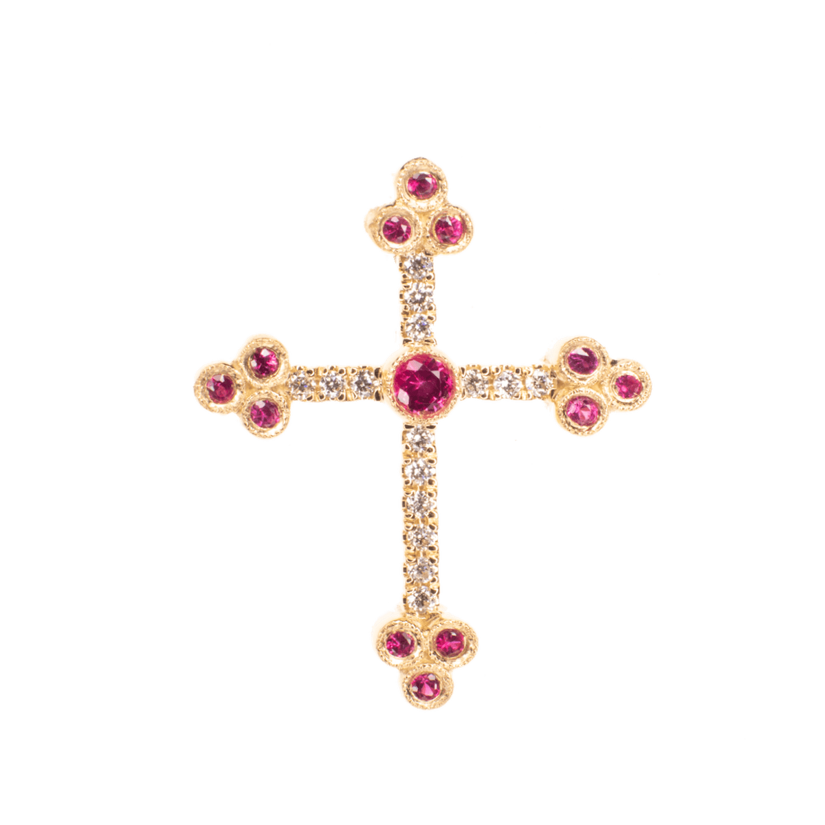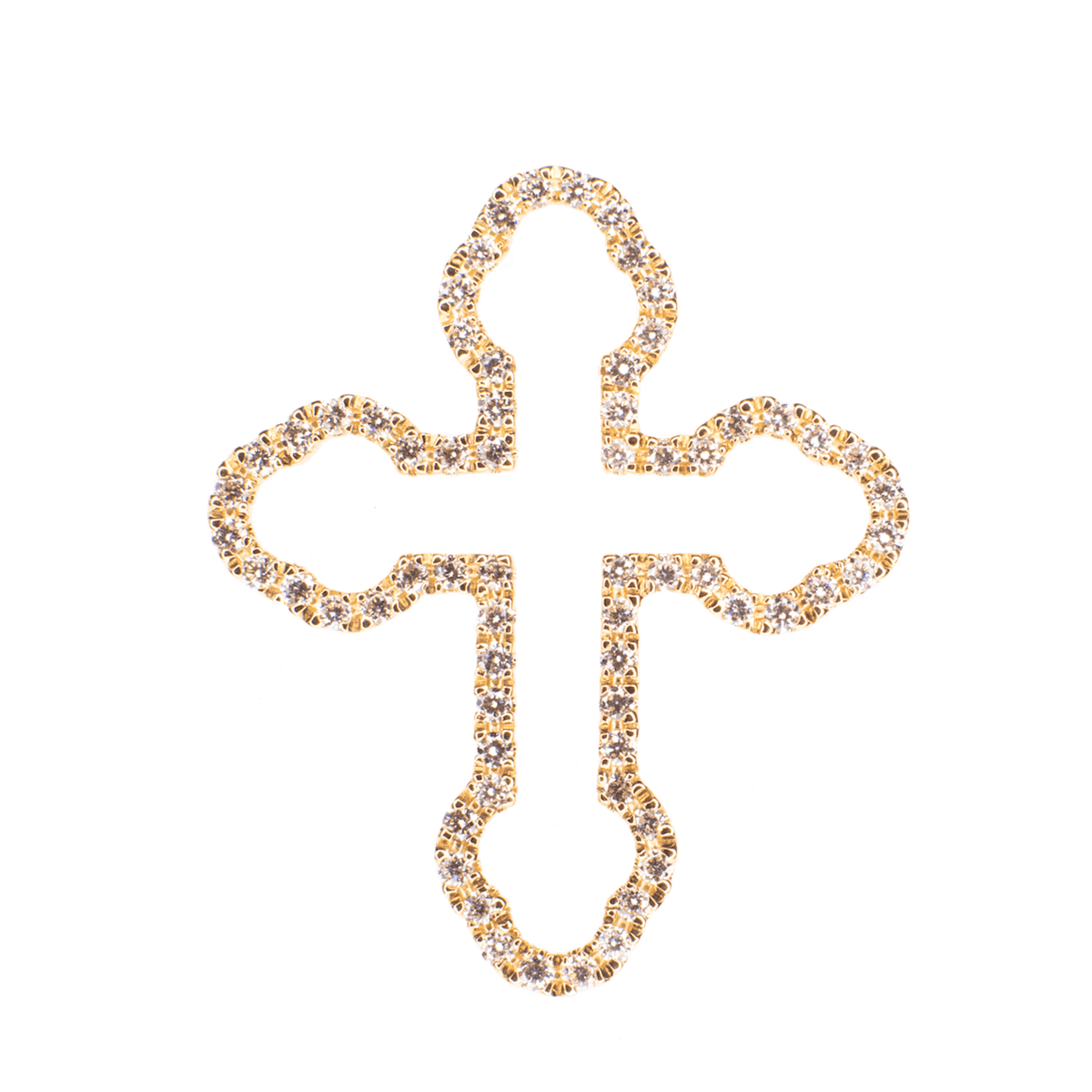 The Inner Cross is suspended within the Outer Cross, AND every single gemstone and diamond is cut with the full 57 facets, creating a sparkle so miraculous you just have to see it to believe it.